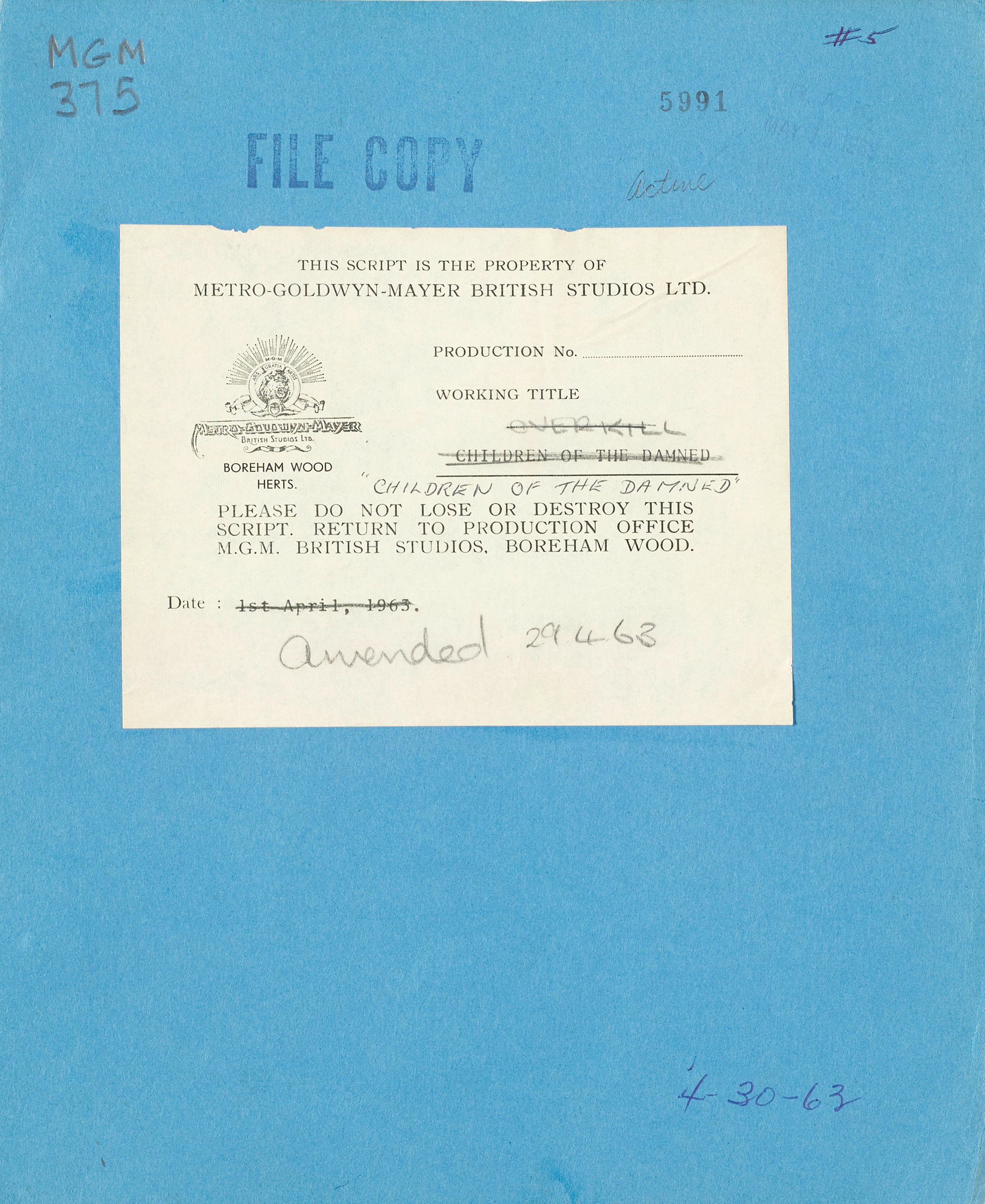 Stockfoto metro goldwyn mayer british studios ltd dr ab